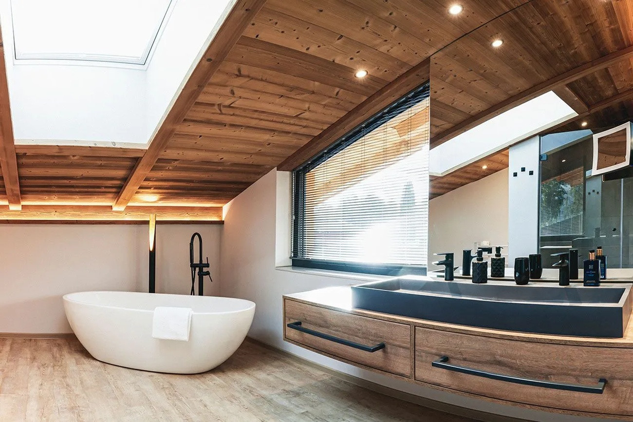 Chalet Amadeus biedt royale ruimte voor maximaal 14 gasten en beschikt over zes stijlvol ingerichte slaapkamers en vijf moderne badkamers. Op de begane grond bevinden zich een comfortabele tweepersoonsslaapkamer met en-suite badkamer en een aparte slaapkamer met twee stapelbedden – ideaal voor gezinnen met kinderen. Op de bovenverdieping zijn nog vier tweepersoonsslaapkamers, waarvan twee met een en-suite badkamer en twee met een ruime gedeelde badkamer. Vanuit de twee slaapkamers met en-suite badkamers op de bovenverdieping is er directe toegang tot het balkon, dat een indrukwekkend uitzicht biedt op het omliggende Alpenpanorama.